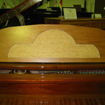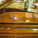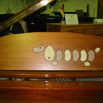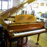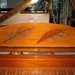 ピアノの上前板の内側のパネルを当店がデザインしたオリジナルパネルをはめ込んだピアノです。
